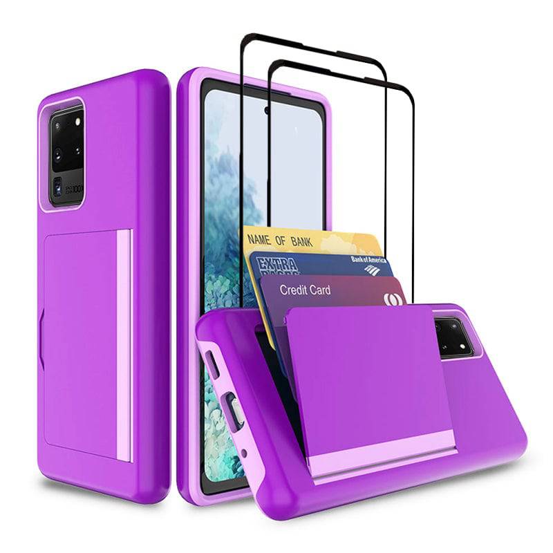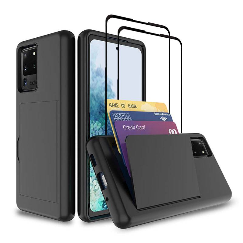 Armor Protective Card Holder Case for Samsung S20 Ultra With 2-Pack Screen Protectors