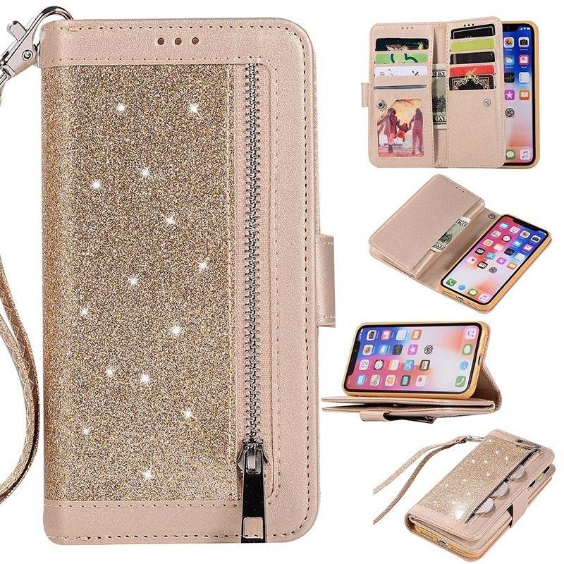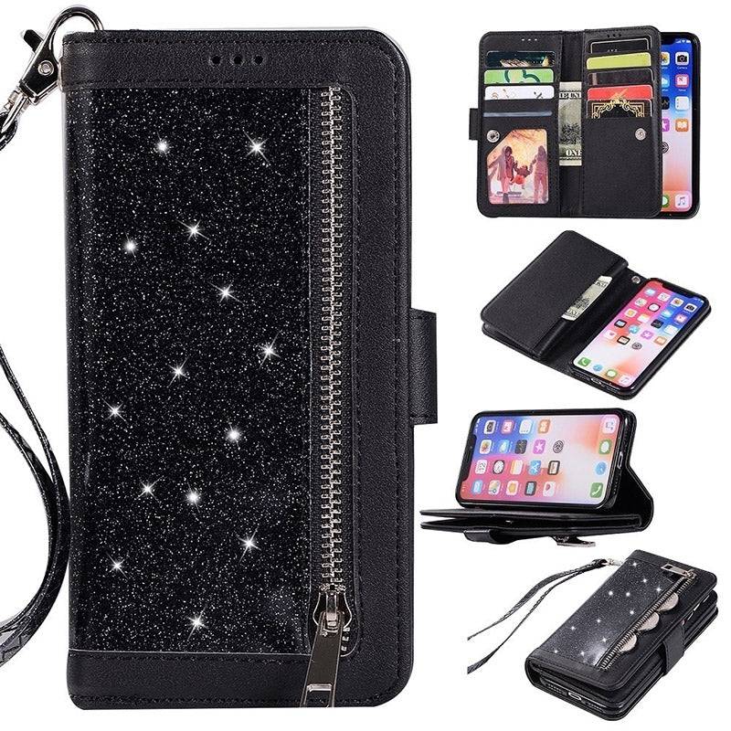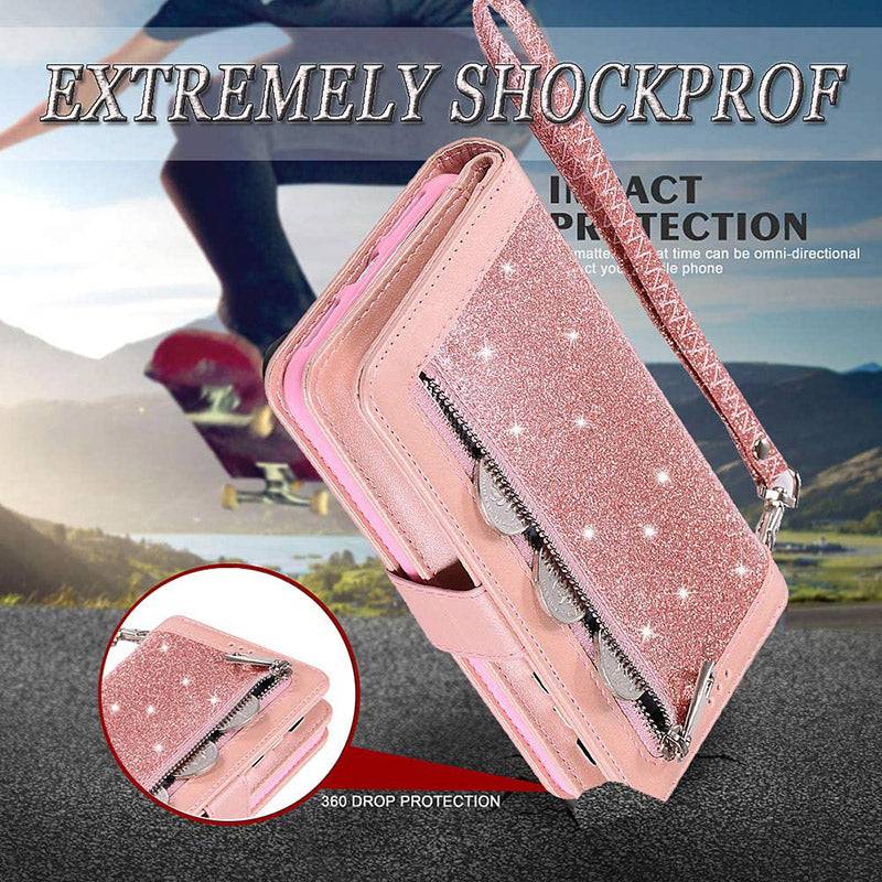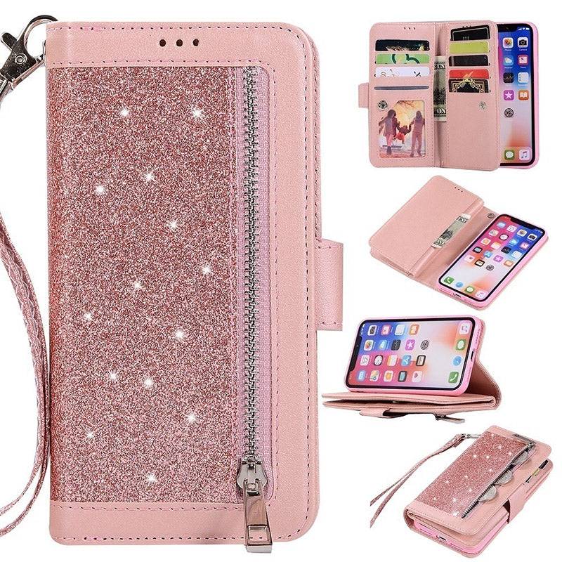 Bling Wallet Case with Wrist Strap for iPhone
