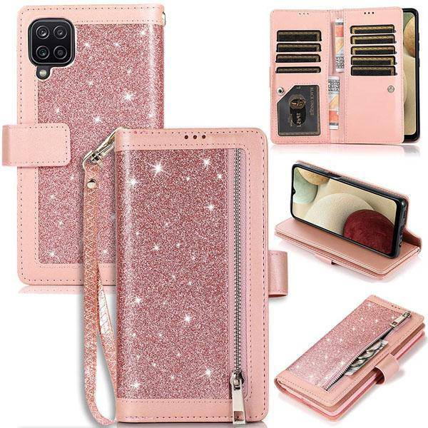 Bling Wallet Case with Wrist Strap for Samsung A12
