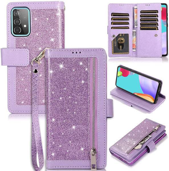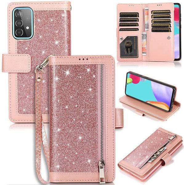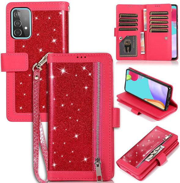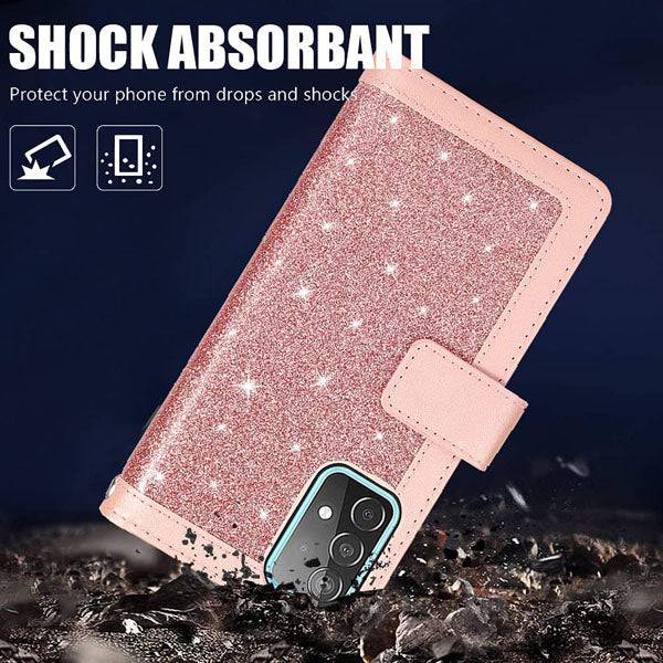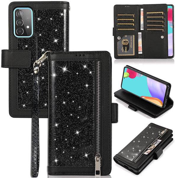 Bling Wallet Case with Wrist Strap for Samsung A32(5G)