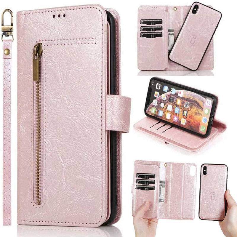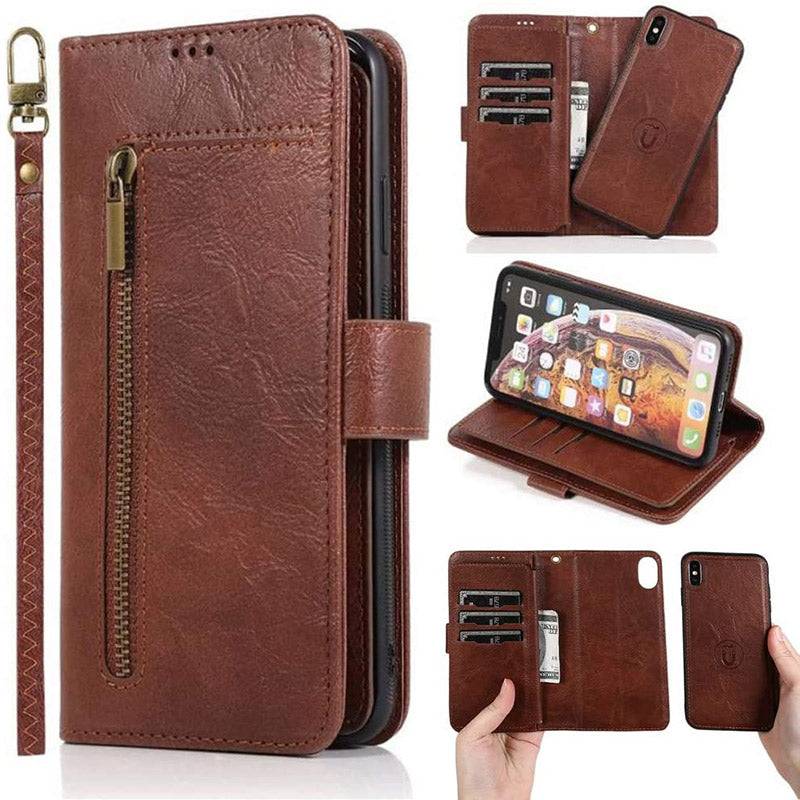 Detachable Flip Folio Zipper Purse Phone Case for iPhone Xs Max