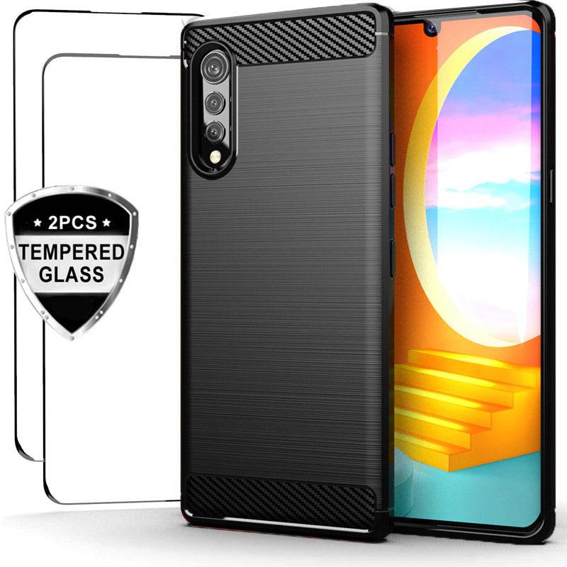 Luxury Carbon Fiber Case For LG Velvet With 2-Pack Screen Protectors