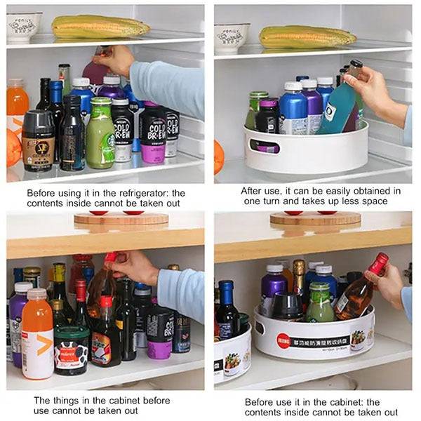 - ✅【Anti-slip Design】: Lazy Susan's bottom adopted a non-slip silicone design.The anti-slip performance is excellent.😝 When you rotate it, you don't have to worry whether the items in the storage box will slip out