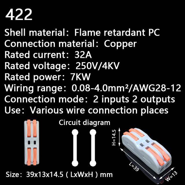 WIRE GAUGE SUITABILITY - Connects different types & sizes of wiring. Suitable for solid and stranded wires connections, voltage range of the connector is from solid/stranded size of 0.08-2.5mm2 / 28-14AWG.