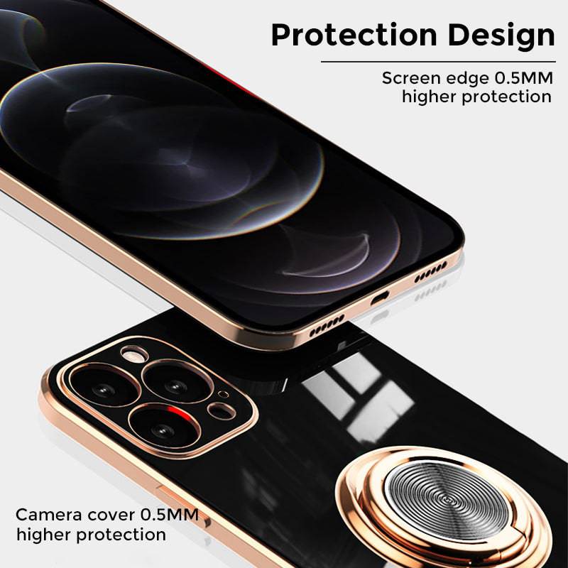 Shiny Plating Built-in Finger Ring Case For iPhone