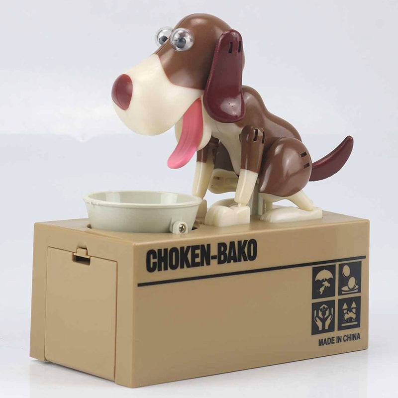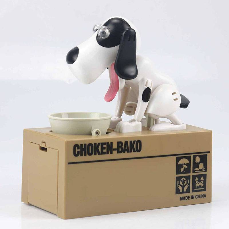 Drop some coins into his dish and he immediately goes for it, with a dog-like enthusiasm that you'll love! The coins are stored inside the box after they "eats" them up, making it a great way to promote savings for all ages!