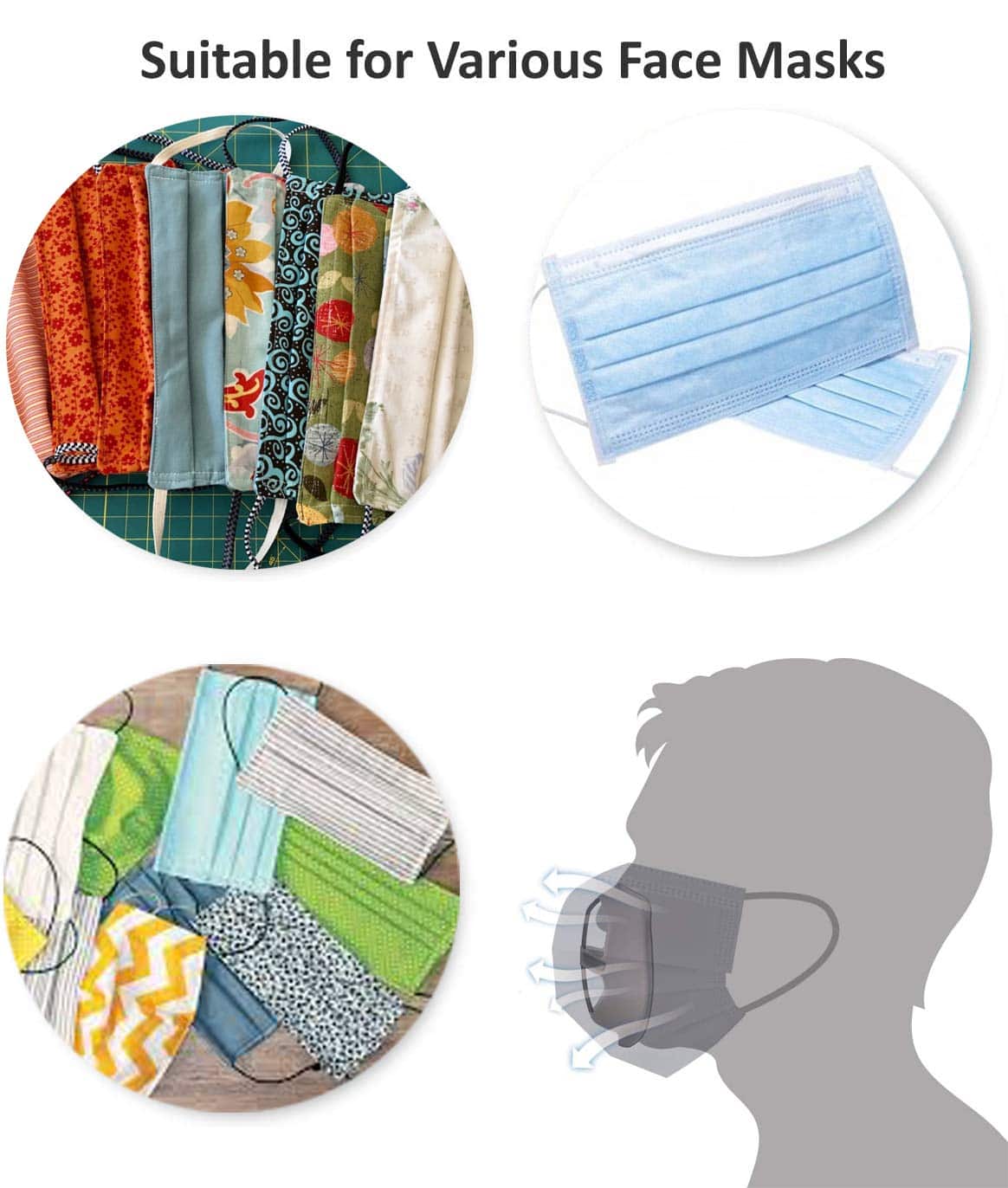 Fácil de Respirar - Ele segura o tecido da máscara ao redor da boca para criar mais espaço para respirar quando uma máscara é colocada no rosto.