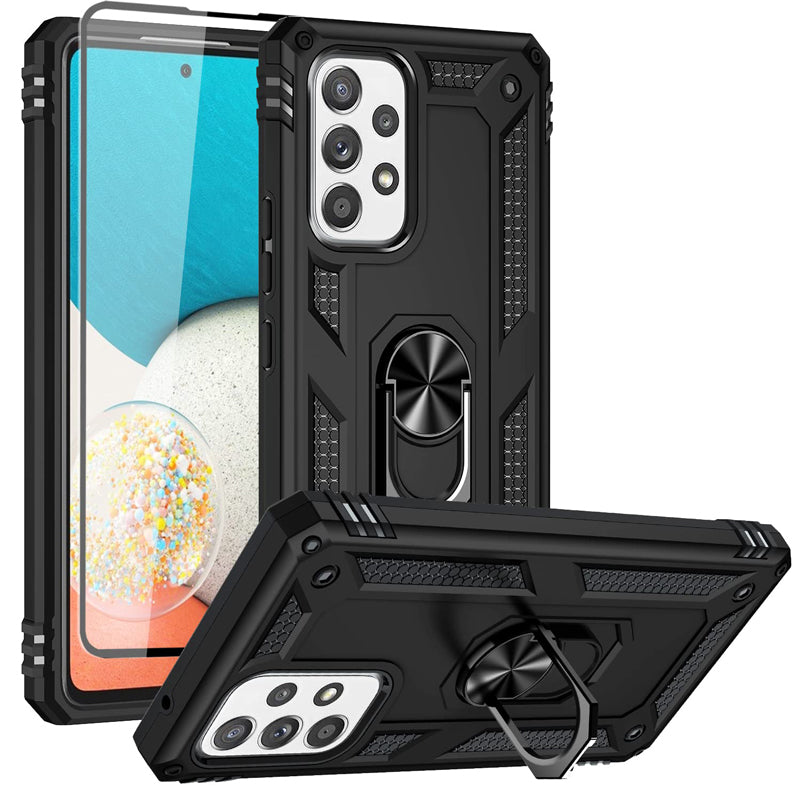 Capa de telefone com suporte de anel de armadura para Samsung A53 (5G) com protetor de tela de 1 unidade - entrega rápida