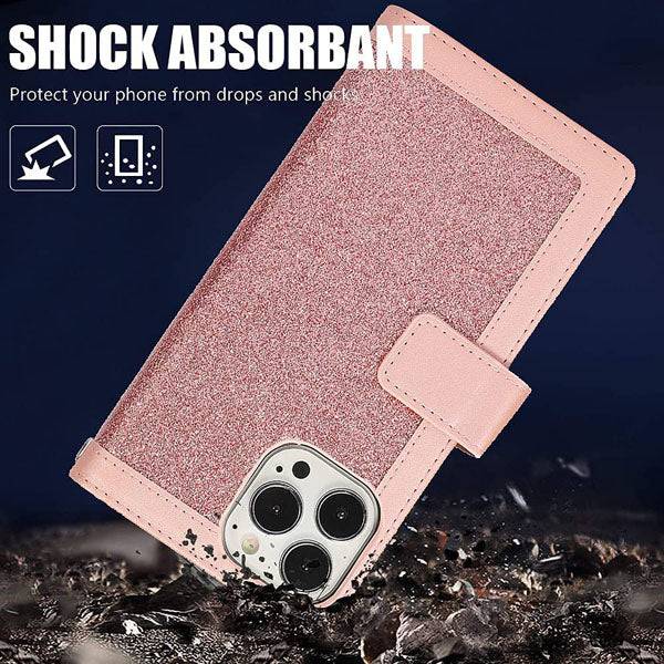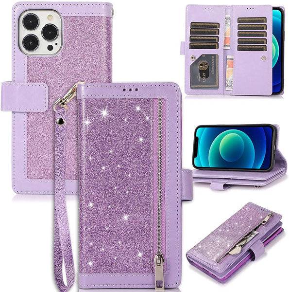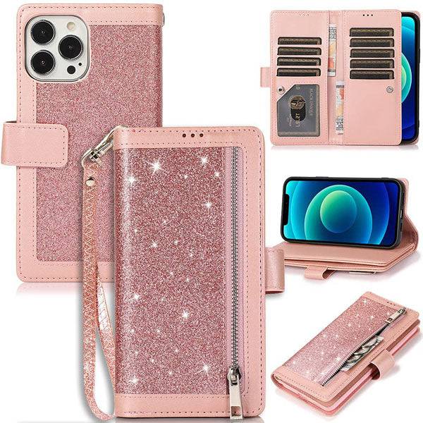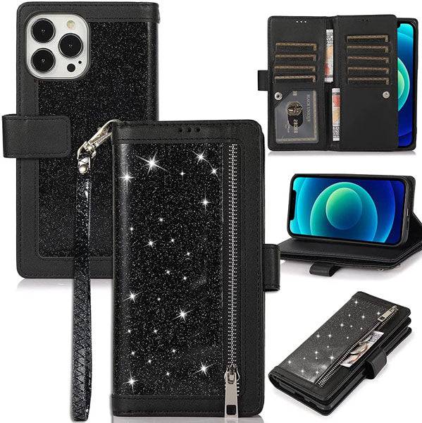 Capa carteira Bling com alça de pulso para iPhone série 13