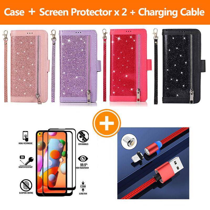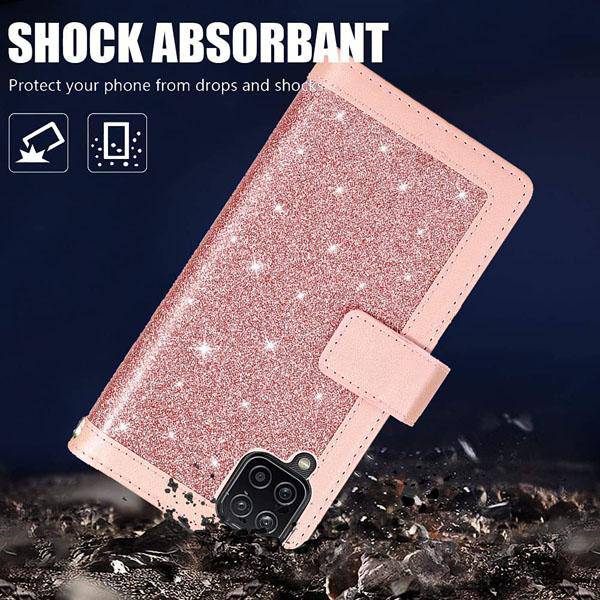 Capa tipo carteira Bling com alça de pulso para Samsung A42 (5G)