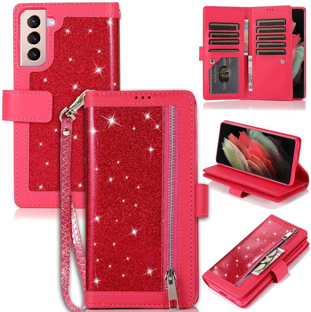▶ [GRANDE CAPACIDADE + FAIXA DE PULSO] : O interior possui 9 compartimentos para cartões , 1 bolso para moedas com zíper, 2 bolsos laterais para armazenar convenientemente sua identidade, licença, foto, dinheiro e cartões de crédito. Telefone sem complicações.