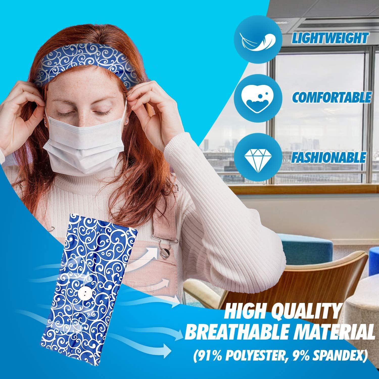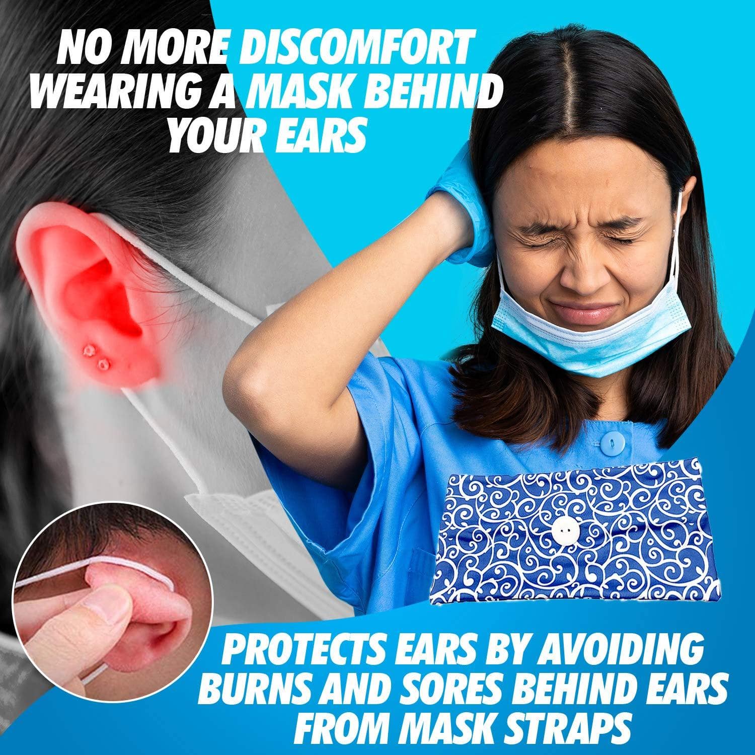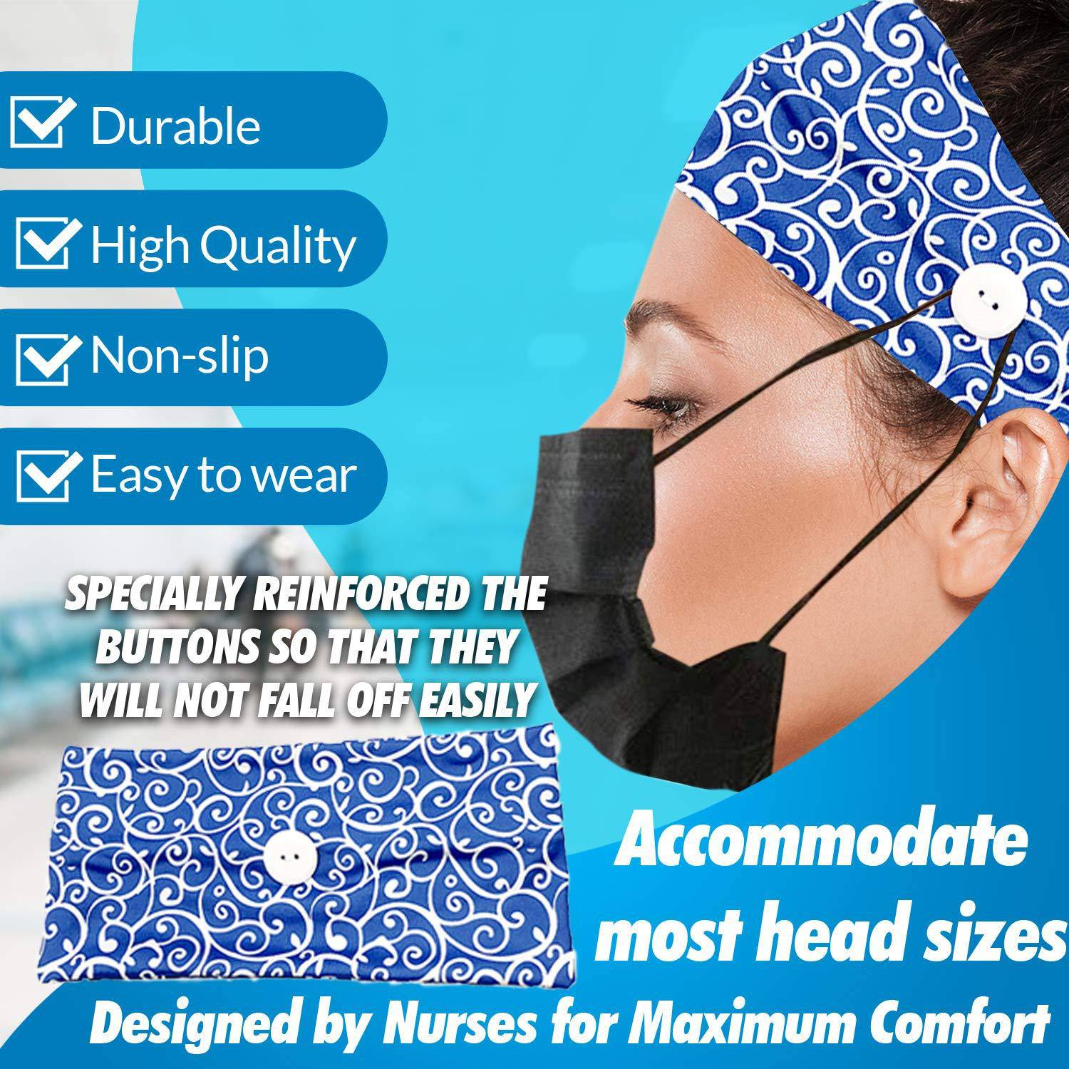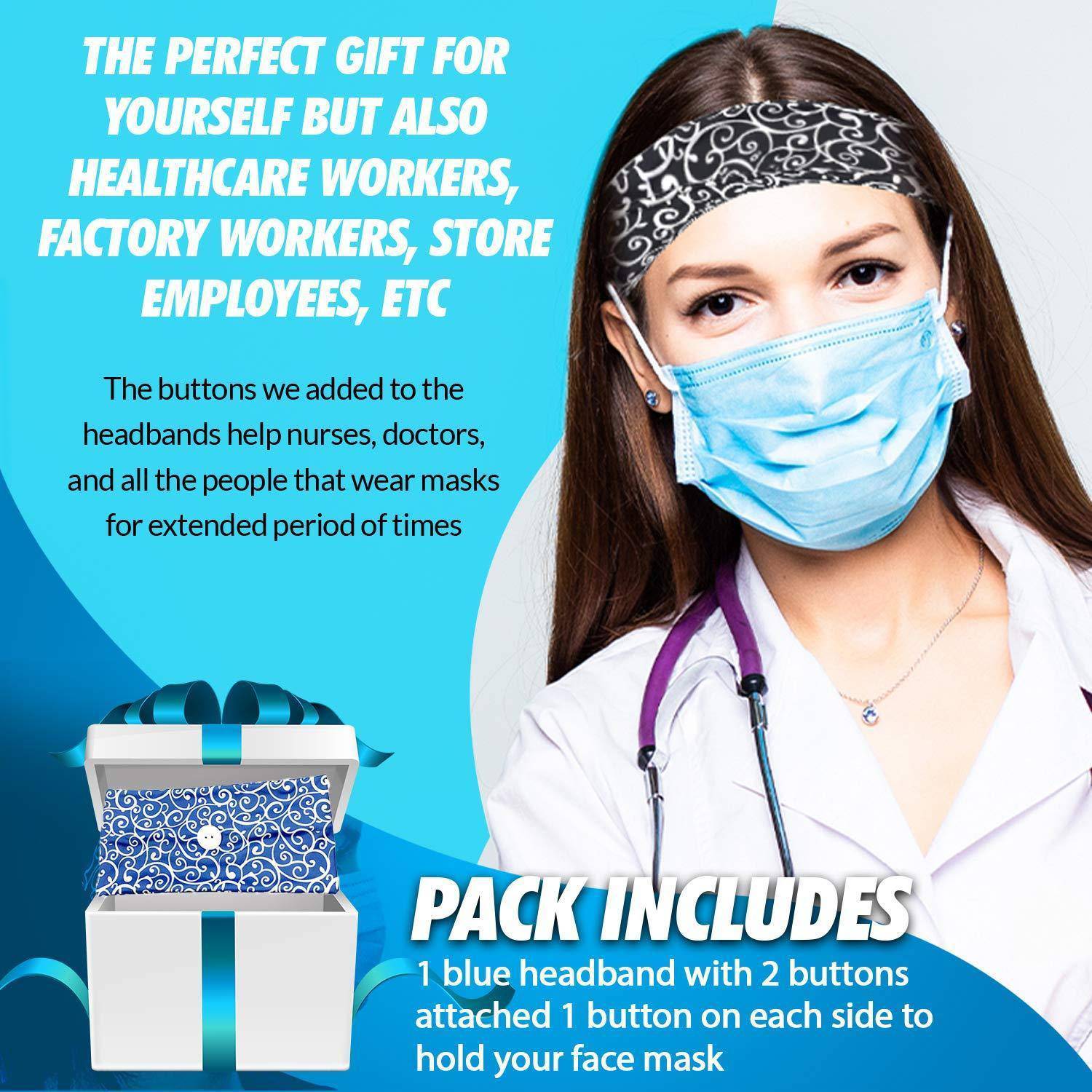 - Suporte para faixa de botão: Sem dores, deixa nossos ouvidos mais confortáveis . Você pode usá-lo o dia todo e ele permanecerá no lugar . É feito de material respirável de alta qualidade.
