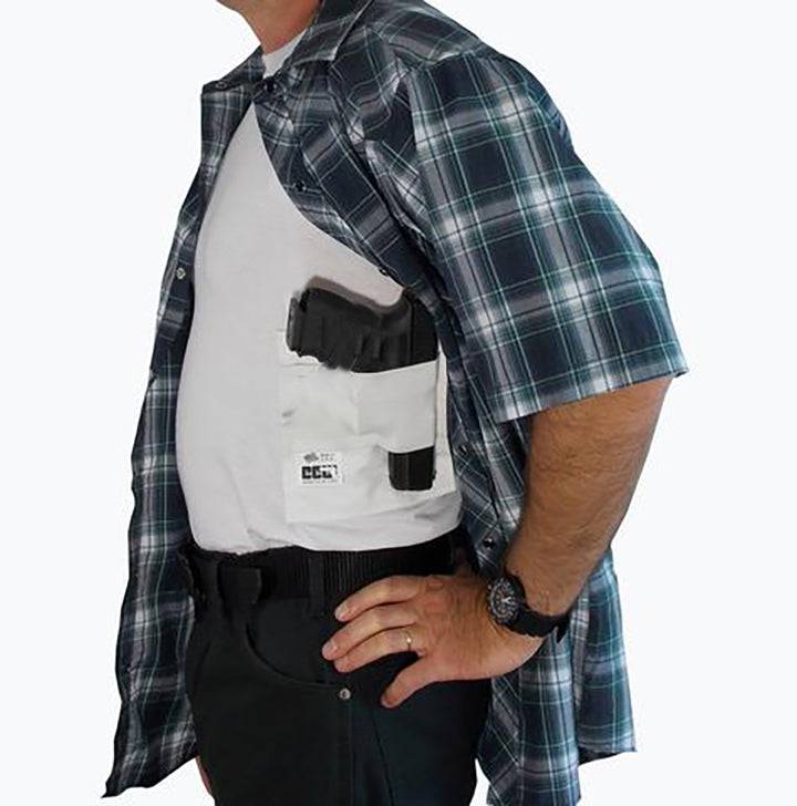 ADEQUADO: Permite acesso imediato à sua arma ao usar camisas de botão ou pulôveres. Possui dois coldres idênticos com espaço extra perfeito para revistas, documentos ou dispositivos do tamanho de um telefone celular, o método de transporte oculto mais confortável para qualquer arma de autodefesa.