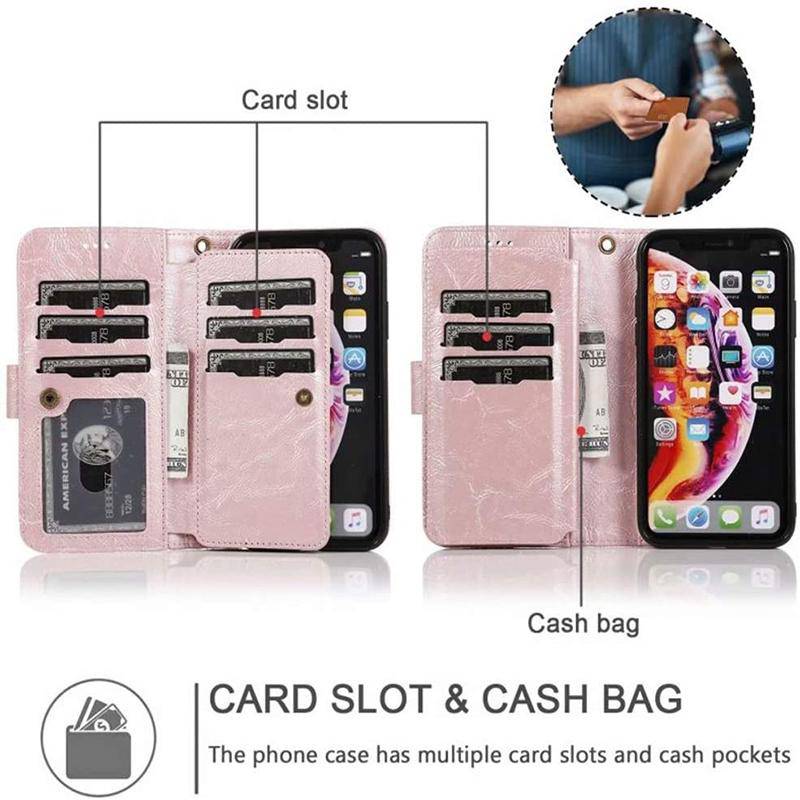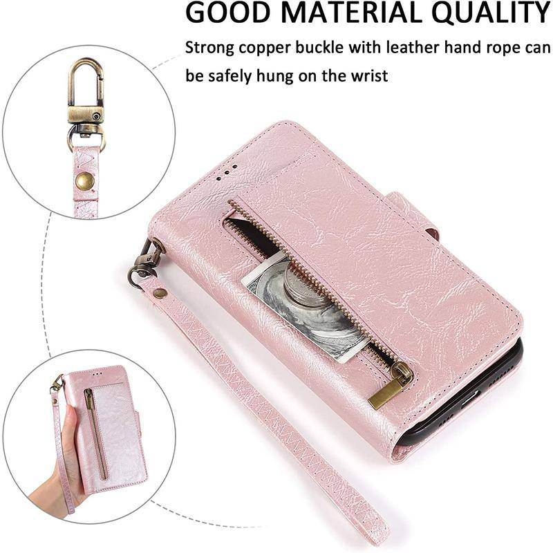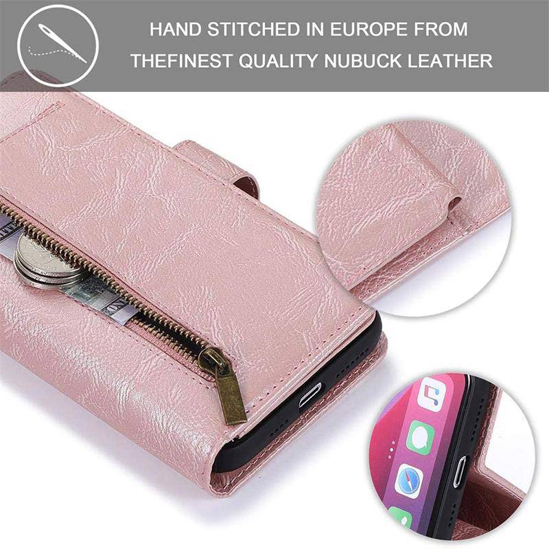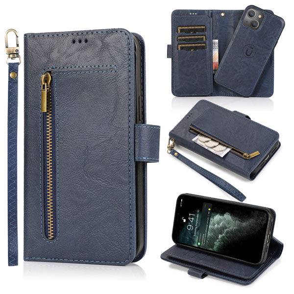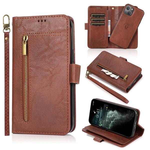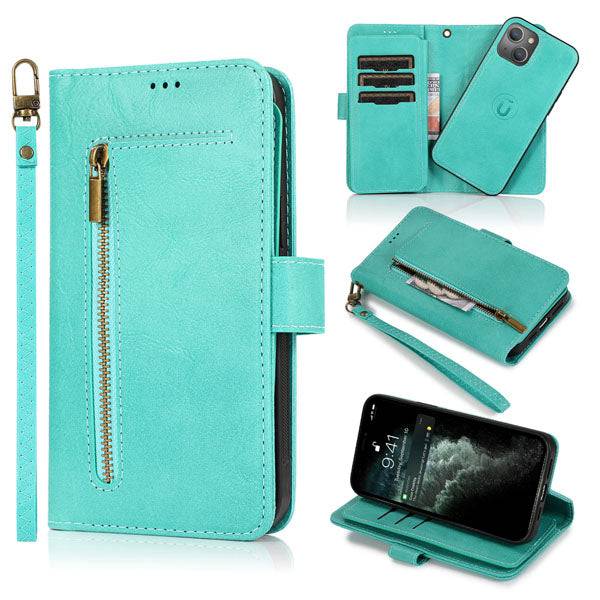 Capa de telefone com bolsa flip fólio removível com zíper para iPhone 13 Series
