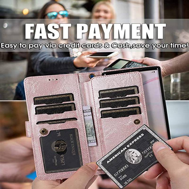 - DESIGN DE CARTEIRA E ZÍPER - com compartimentos para cartões, porta-moedas, bolso para moedas com zíper. Com muito espaço para seus cartões básicos, notas e moedas, o que torna pagamento conveniente e rápido . serve como uma pequena bolsa clutch, perfeita para compras, festas e viagens.