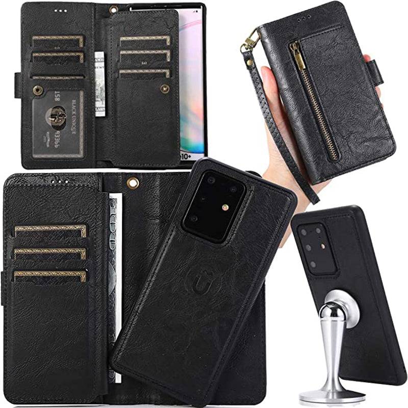 Capa de telefone com bolsa flip fólio removível com zíper para Samsung