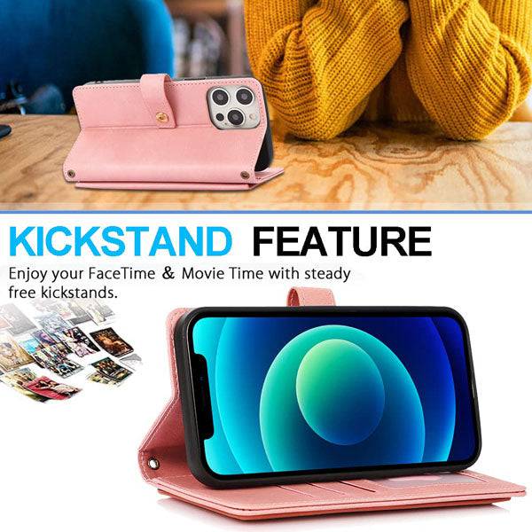 - Capa tipo carteira crossbody de grande capacidade – Inclui 9 compartimentos para cartões e 1 bolso para dinheiro para transportar seus cartões, incluindo cartões de crédito, carteiras de identidade, carteira de motorista e assim por diante. Claro, você também pode colocar algum dinheiro no bolso. Não se preocupe, seus cartões ou dinheiro deslizarão da capa crossbody do telefone, pois a capa garantirá o fechamento completo da parte da carteira.