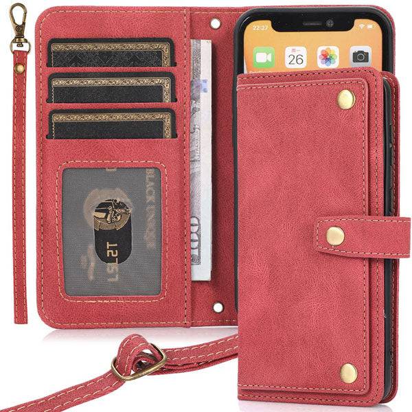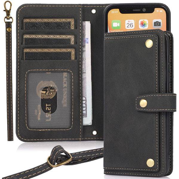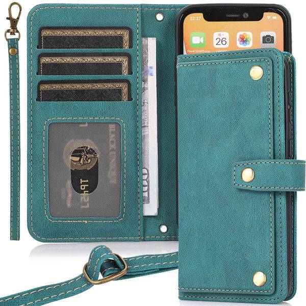Capa de telefone carteira à prova de choque de couro crossbody para iPhone 13 Series