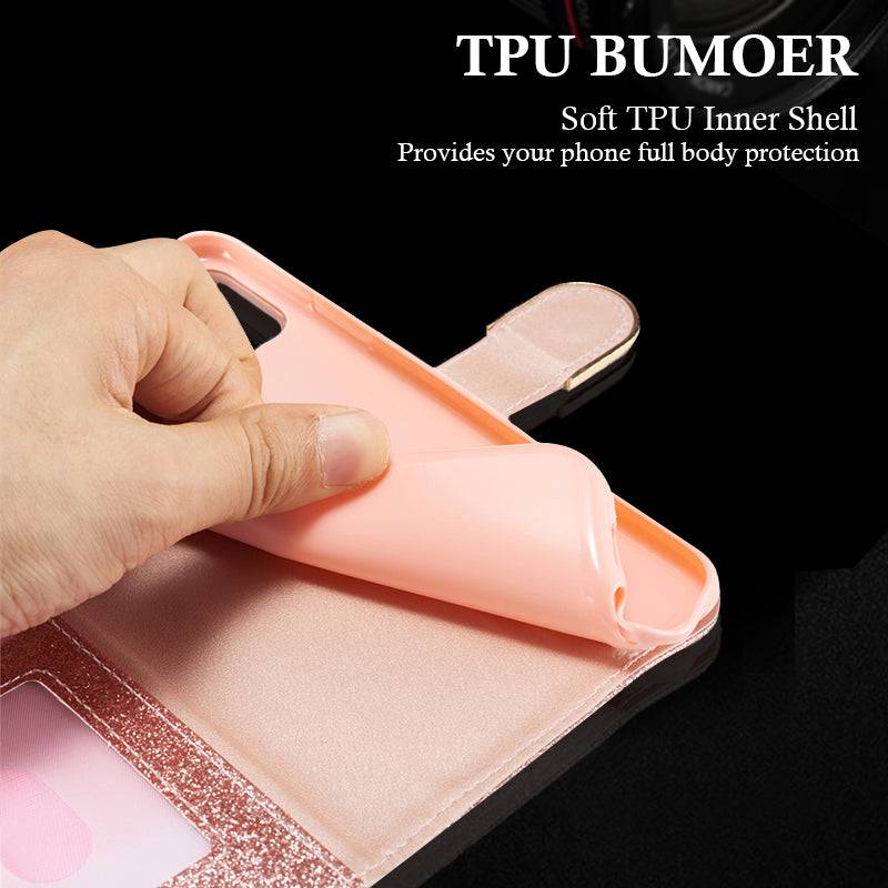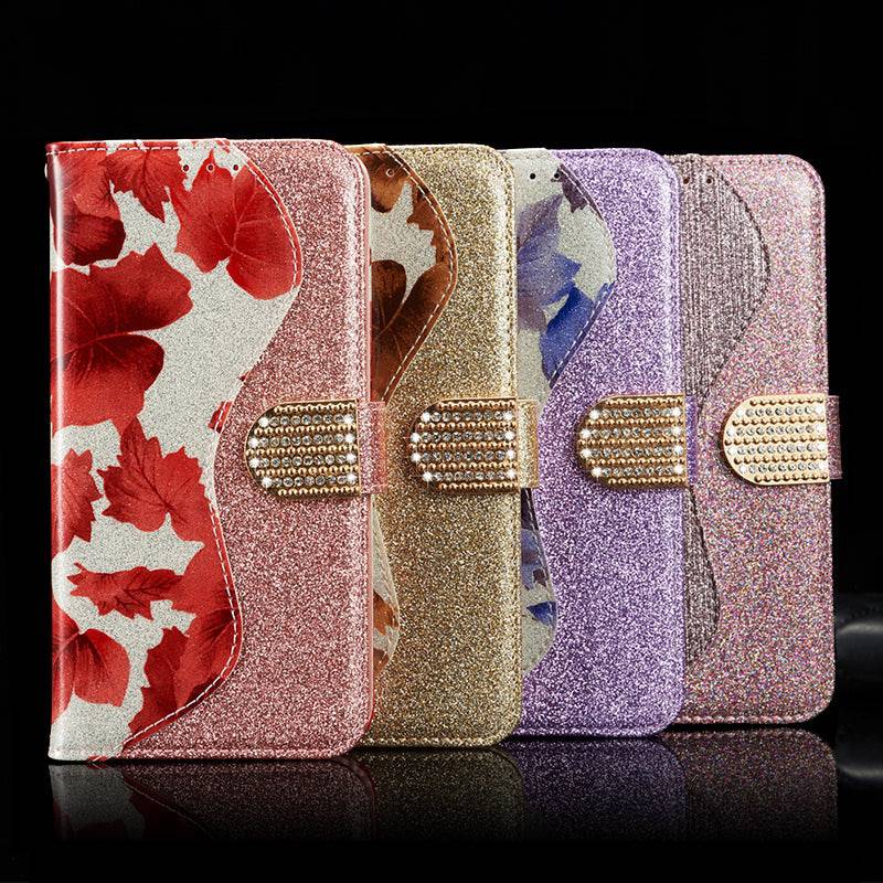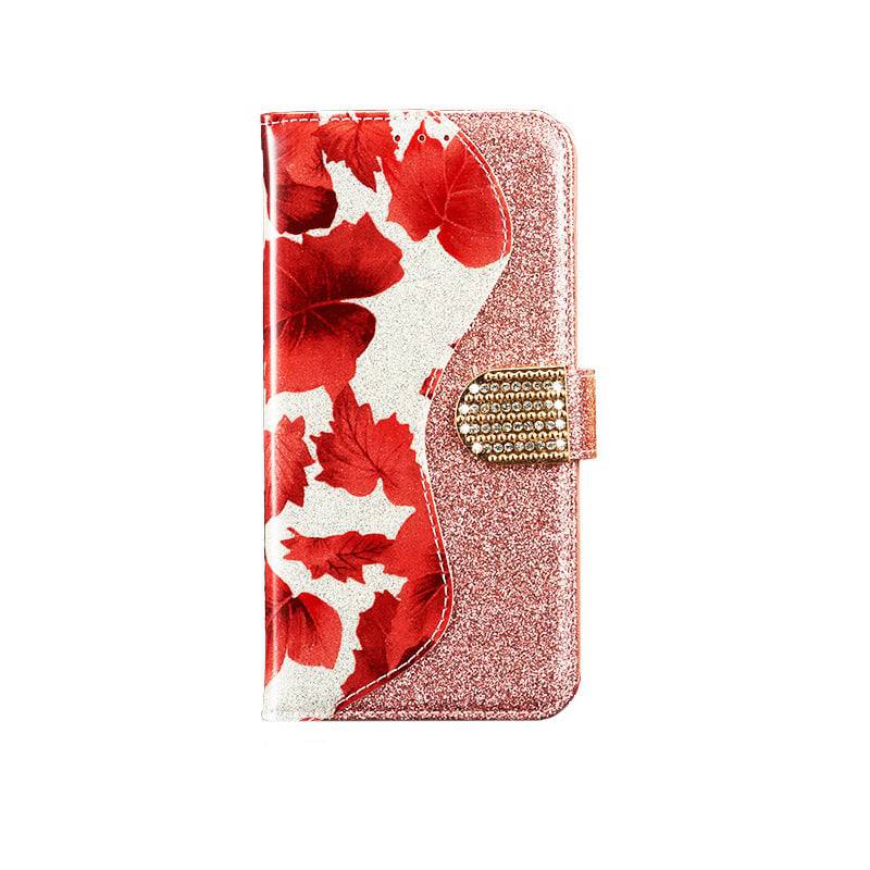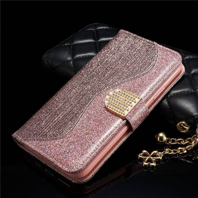 Capa flip de couro com strass e glitter para Samsung