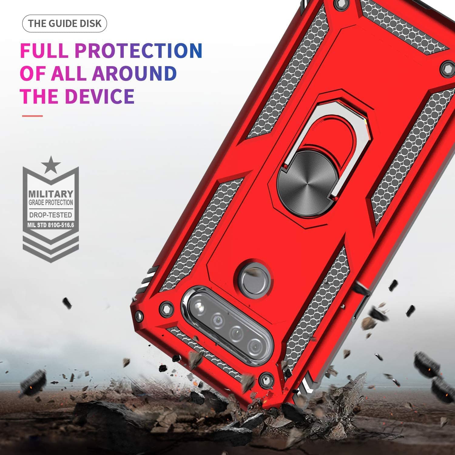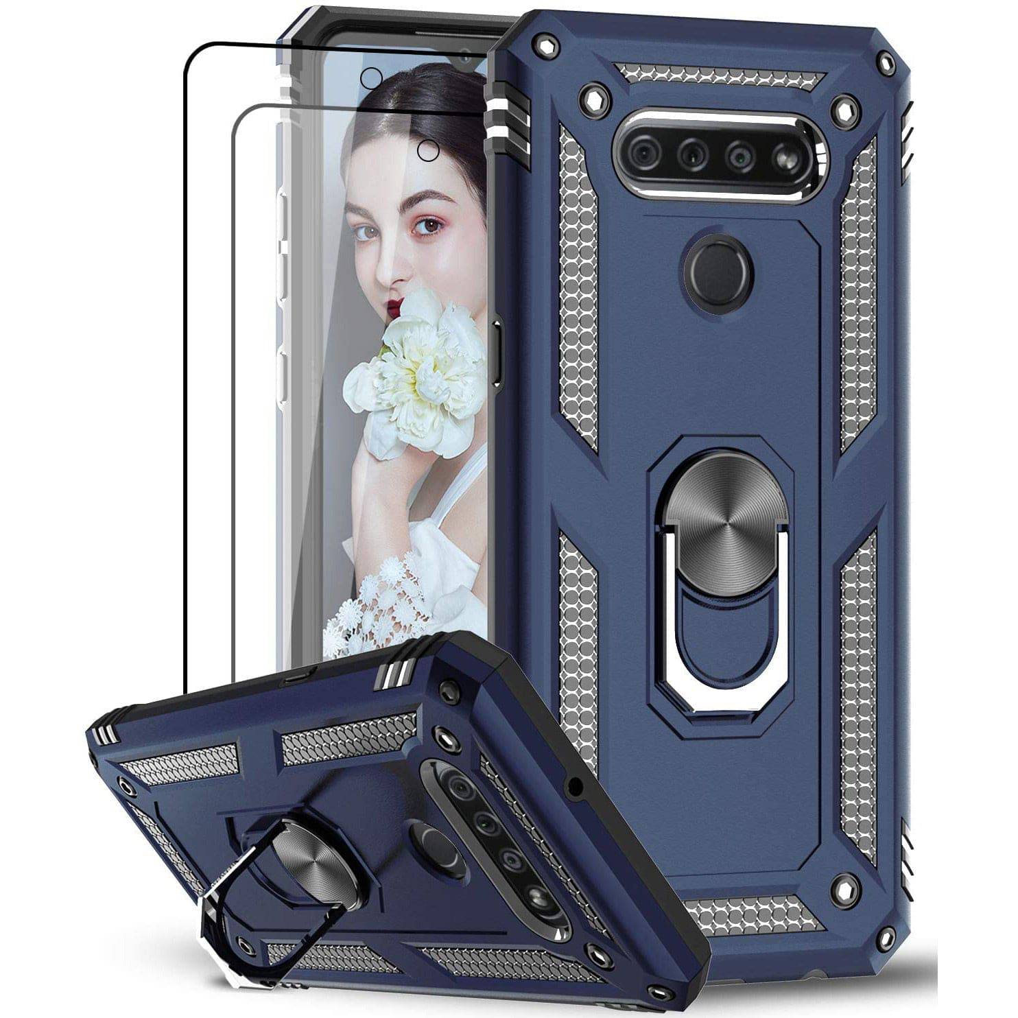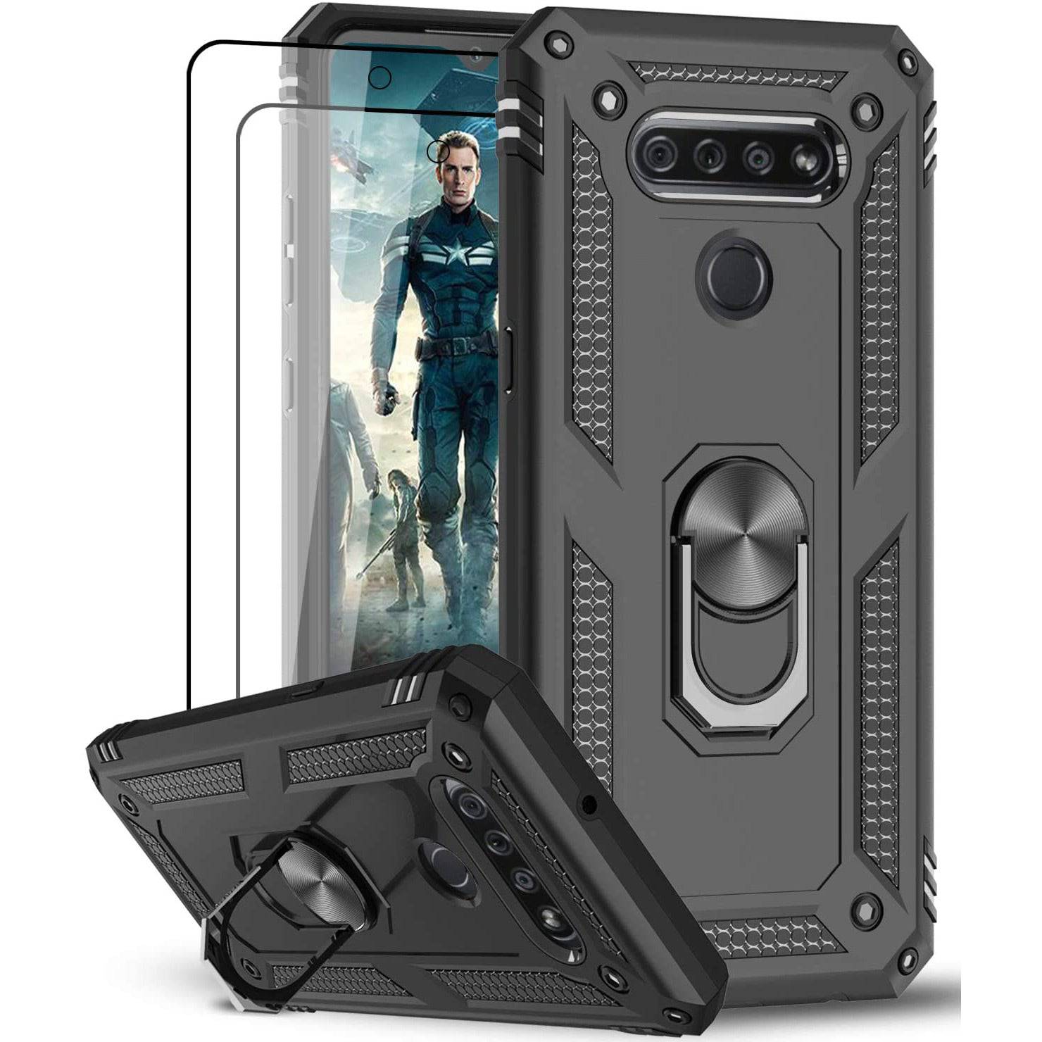 Capa de telefone com suporte de anel de armadura de luxo para LG K51 com [2 pacotes] protetores de tela
