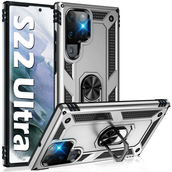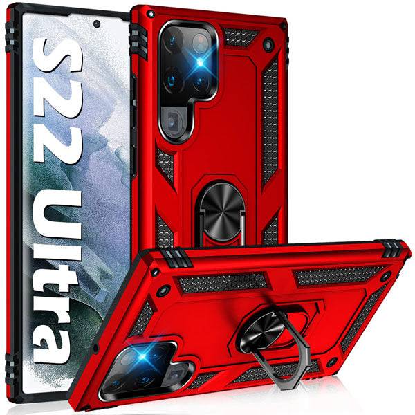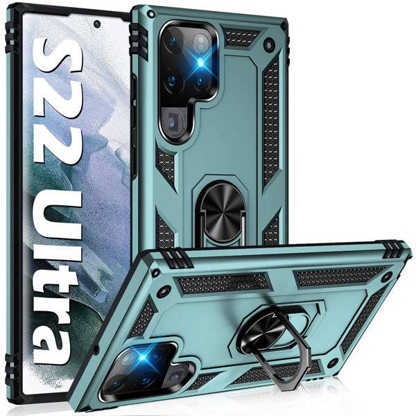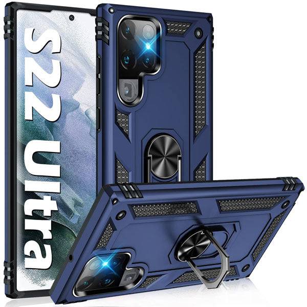 Capa de telefone com suporte de anel de armadura de luxo para Samsung S22 Series