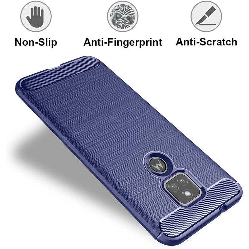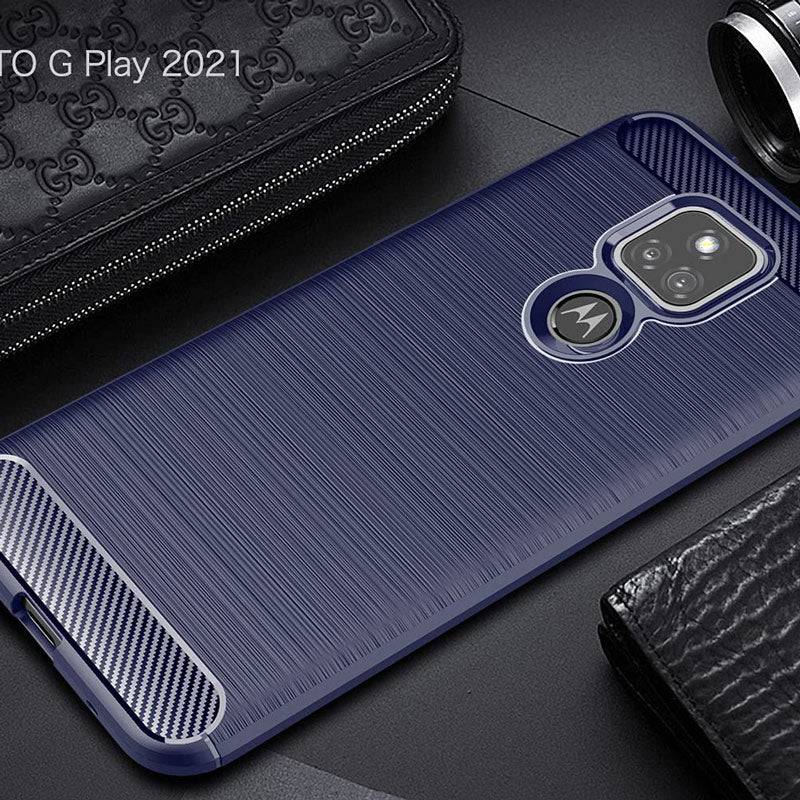 Capa luxuosa de fibra de carbono para Moto E7 com protetor de tela