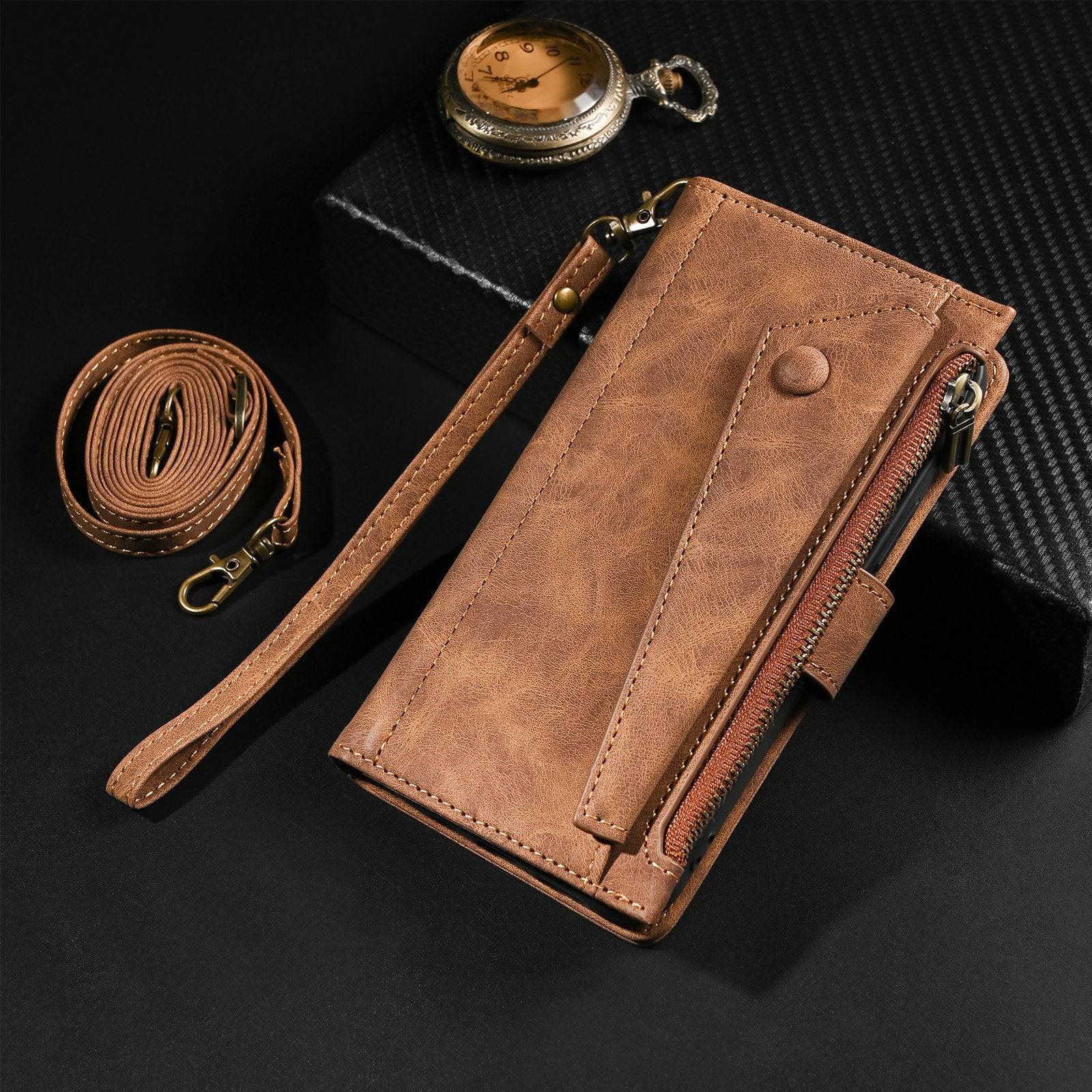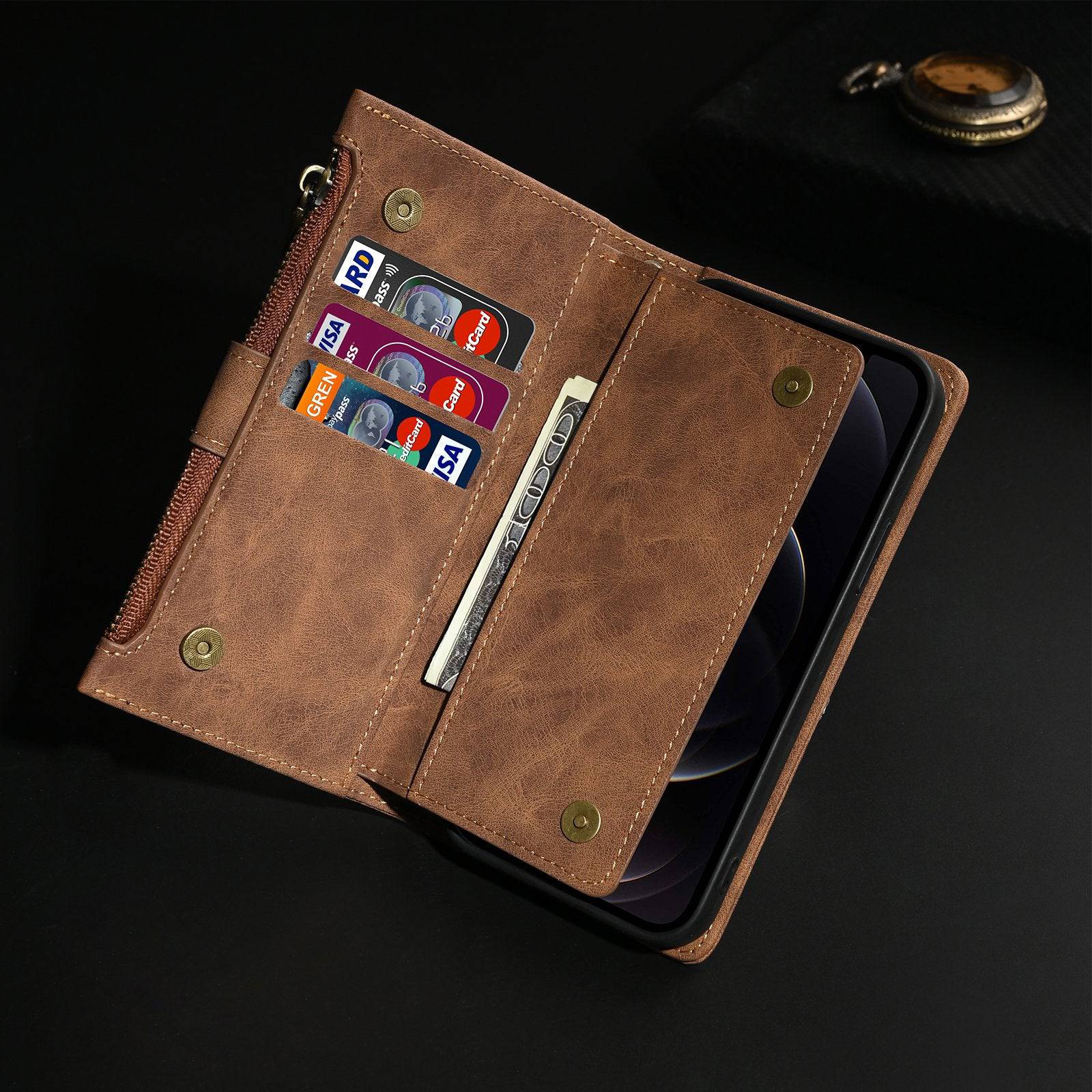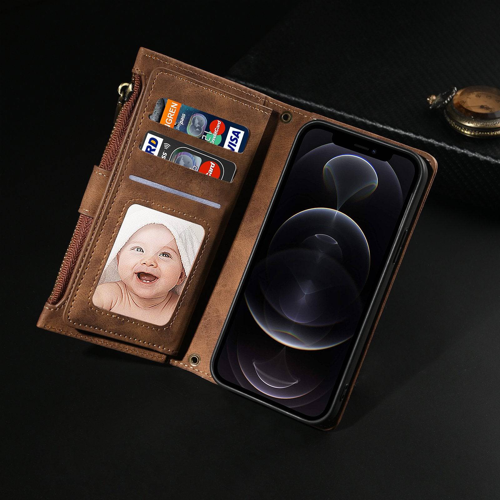 Capa tipo carteira de couro luxuosa com zíper para iPhone