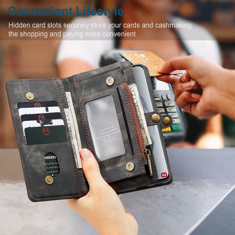 【Bolsos para cartão embutidos】 A carteira com 11 slots para cartões, 3 bolsas para dinheiro, 1 bolso para moedas com zíper, 1 capa para celular , guarde seus cartões de crédito, carteira de identidade, dinheiro, moedas, ingressos, telefone, etc. Organizado.