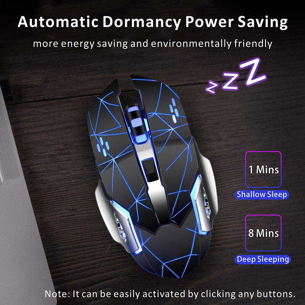 - Luz LED de suspensão automática: O mouse dormirá automaticamente e a luz LED será desligada por mais de 8 minutos de inatividade, ele entrará no modo de economia de energia para economizar energia. Você pode clicar em qualquer botão para ativá-lo.
