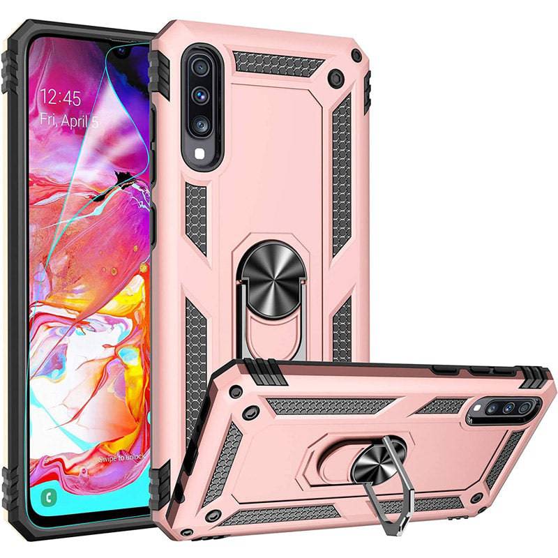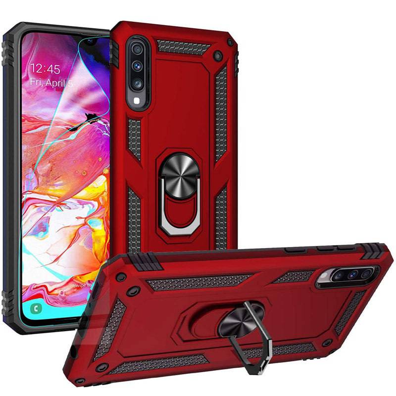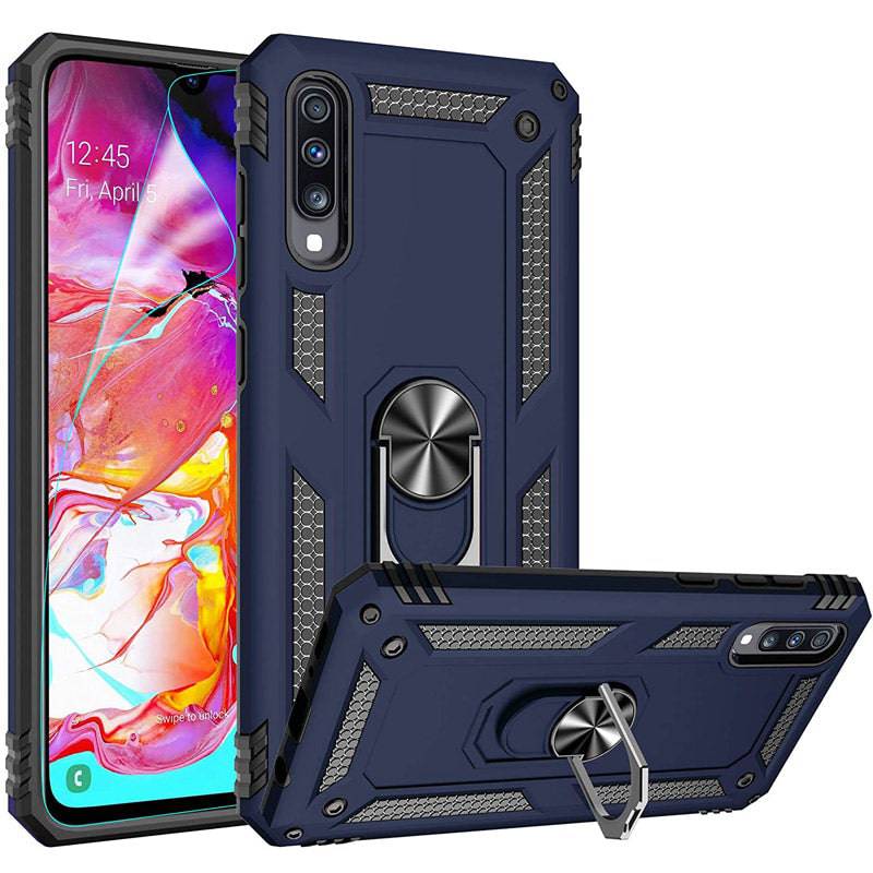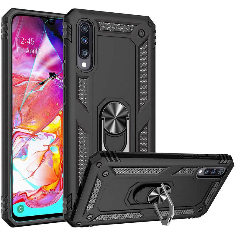 Capa de telefone com suporte de anel de armadura de luxo Samsung A70 com protetor de tela de vidro temperado de 1 pacote