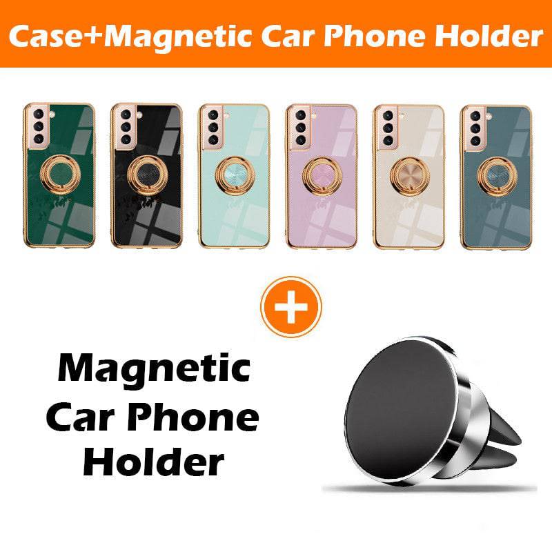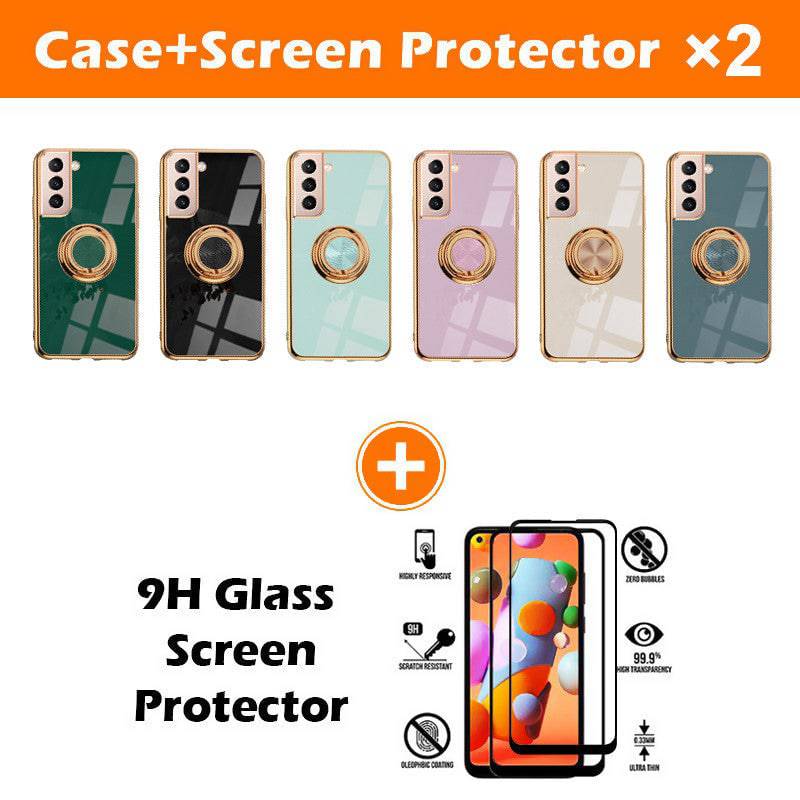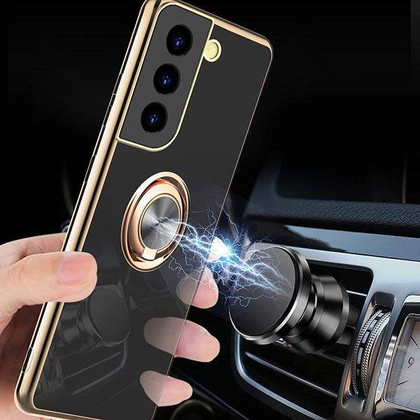 Capa com anel de dedo embutido com revestimento brilhante para Samsung S21 FE