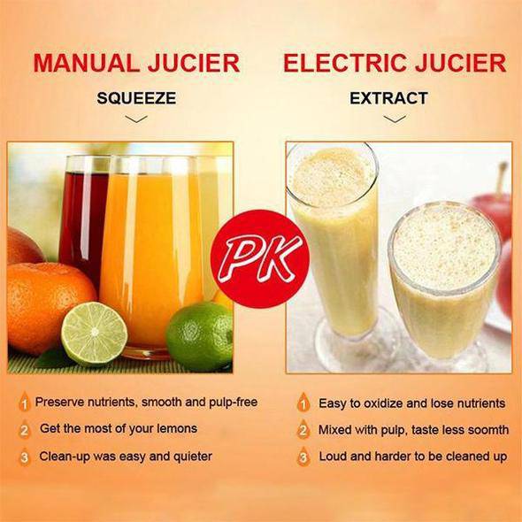 - SEM ESFORÇO: Princípio da alavanca, extrator de suco fácil, fácil de usar para idosos e crianças.