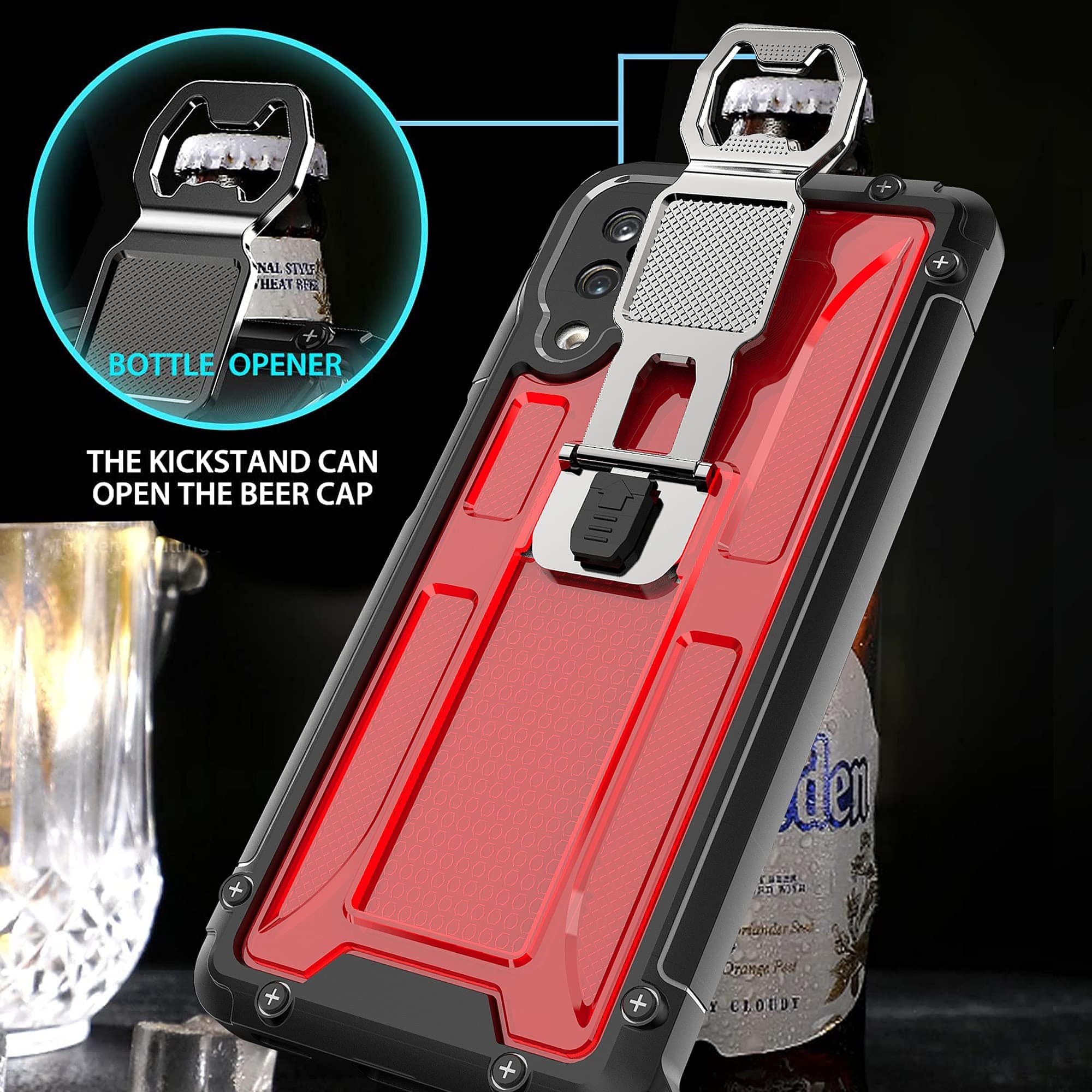 [Design exclusivo de suporte integrado 3 em 1] : suporte integrado simples, mas exclusivo, projetado com abridor de garrafas, placa de metal (fixada ao suporte magnético para carro) e suporte. É fácil de segurar nas mãos ou carregar no bolso, ótimo para assistir, transmitir, trabalhar, ler, aprender ou fazer atividades ao ar livre com as mãos livres.