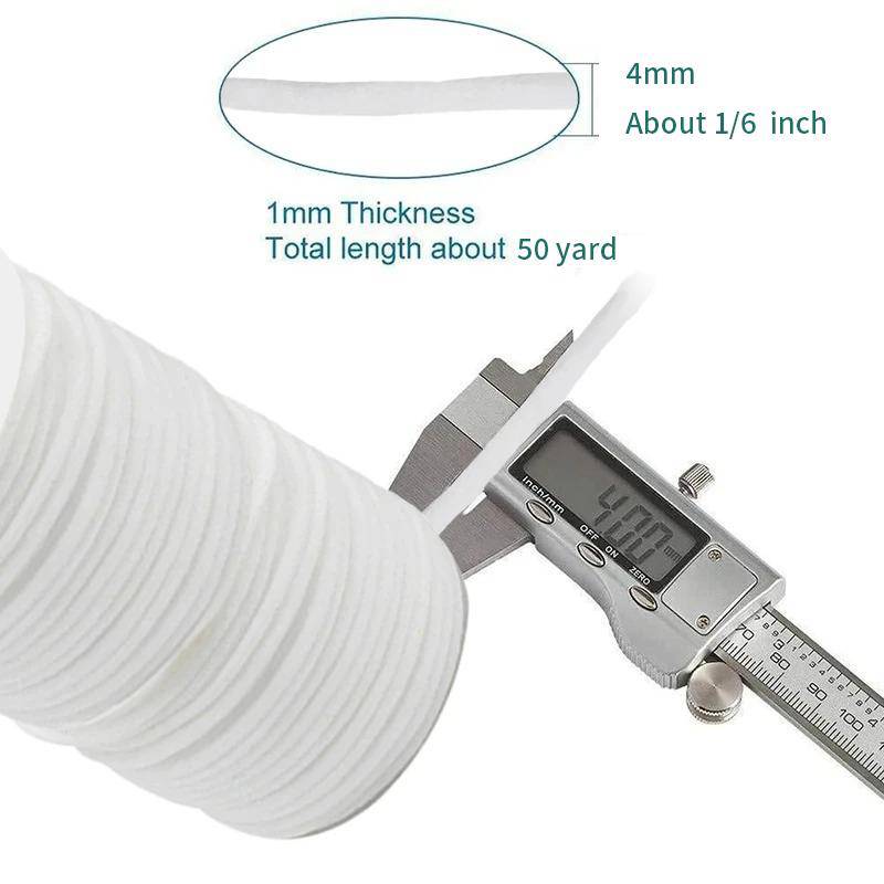 1/6 Inch(4mm)Flat Braided Elastic Cord/White Elastic Band (50 yards)